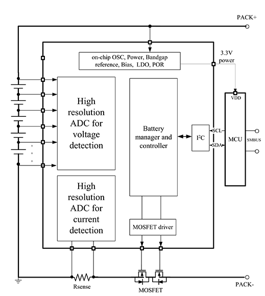 • 模擬前端AFE監控特性 - 集成的電池均衡場效應晶體管FET