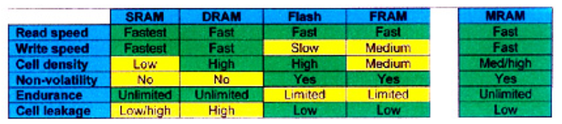 內(nèi)存選項(xiàng)的比較與其他內(nèi)存技術(shù)選項(xiàng)相比,MRAM具有明顯的優(yōu)勢(shì)(下表1)。