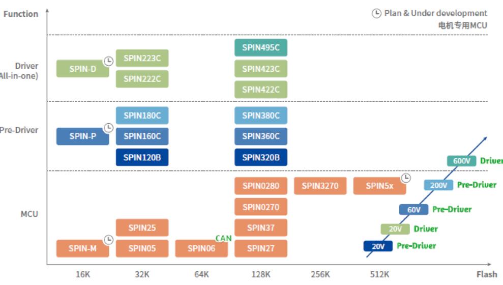 MM32SPIN是電機(jī)與電源相關(guān)應(yīng)用設(shè)計(jì)的專用產(chǎn)品家族,使用高性能ArmCortex-M0與ArmCortex-M3內(nèi)核,依據(jù)功能區(qū)分成專用MCU與驅(qū)動(dòng)MCU兩種。MM32SPIN系列最高提供了128KB Flash,內(nèi)置了多路UART、I2C、SPI、CAN以及多種高精度模擬外設(shè),包括:比較器、12位3MspsADC與運(yùn)算放大器。驅(qū)動(dòng)MCU提供了集成電源的功能,預(yù)驅(qū)、LDO以及MOSFET等豐富的外設(shè),規(guī)劃的電壓范圍有20V、60V、200V以及600V,產(chǎn)品豐富且應(yīng)用涵蓋廣泛。總代理英尚微提供開發(fā)板測試及例程支持。
