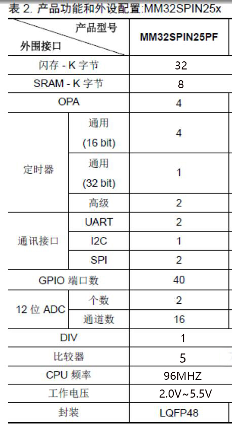 MM32SPIN25PF產品特性