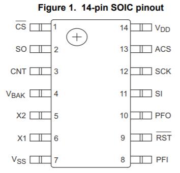 PFI上的比較器將外部輸入引腳與板載1.5V參考進(jìn)行比較。這對(duì)于生成電源故障中斷(NMI)很有用,但可用于任何目的。該系列還包括一個(gè)可編程的64位序列號(hào),可以鎖定使其無(wú)法更改。此外它還提供了一個(gè)事件計(jì)數(shù)器,用于跟蹤在專用輸入引腳上檢測(cè)到的上升沿或下降沿的數(shù)量。計(jì)數(shù)器可以在VDD電源下編程為非易失性或僅使用VBAK由電池供電。如果VBAK連接到電池或電容器,則即使在沒有VDD的情況下也會(huì)對(duì)事件進(jìn)行計(jì)數(shù)。
