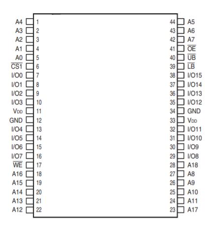 SRAM芯片型號IS62WV51216,管腳圖如下:
