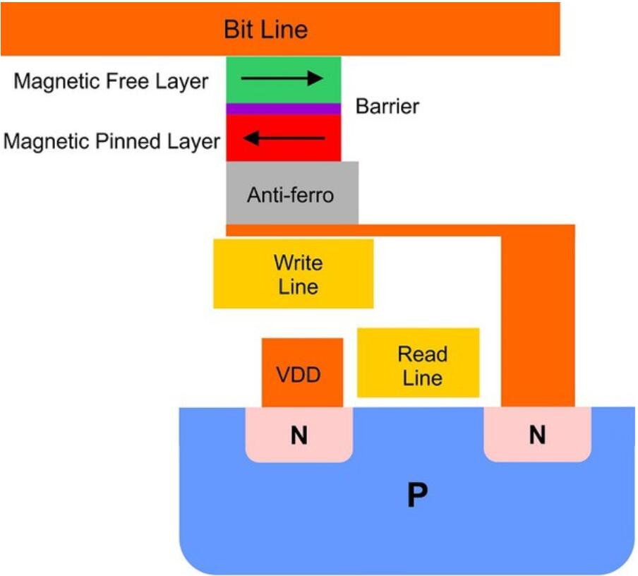 •具有成本效益----簡單到只有一個(gè)晶體管、一個(gè)磁性穿隧結(jié)(1T-1MTJ)位單元;