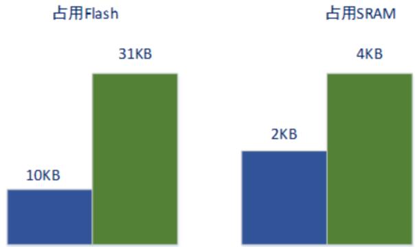 同時巨微BLE協議棧充分優化和減少了對MCU的資源需求。以ARM Cortex-M0為例,實現BLE連接應用需要的系統資源如下: